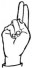 На ћирилици написано МИЉАН ГАЋЕ састоји се из 9 слова [?]. Исписано ћириличном једноручном азбуком за глувонеме: